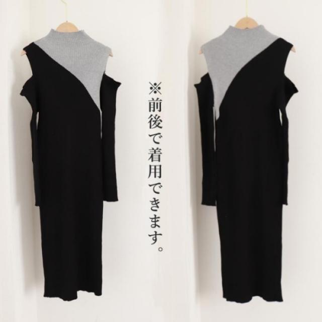 前後2way ニットワンピ リブニット ロングワンピ フェミニン フィット感 秋冬 肌魅せ 大人カジュアルきれいめワンピ