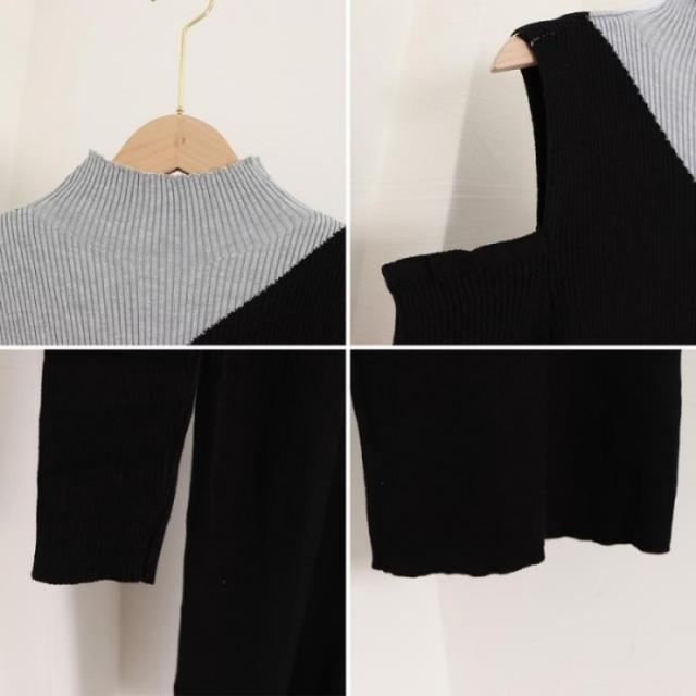 伸縮性があり着心地の良いニット素材に肩出しのデザインで、女性らしく程よい肌魅せができる