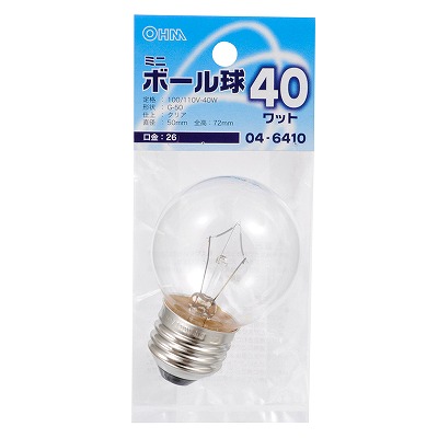 〇G50 E26/40W クリアのミニボール球です。