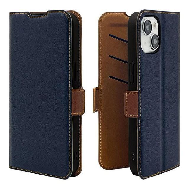 ラスタバナナ iPhone15(6.1inch/ 2眼)/ 14/ 13用 手帳ケース サイドマグネット カード3枚 ネイビー×ブラウン