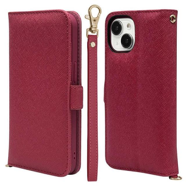 ラスタバナナ iPhone15(6.1inch/ 2眼)/ 14/ 13用 手帳型ケース+ハンドストラップ カード3枚 マゼンタ