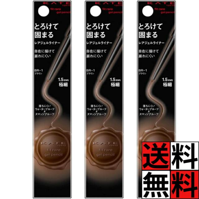 ケイト アイライナー ウォータープルーフ 皮脂 こすれ 汗 水 涙 濃厚 発色 極細 精密 ライン 目元 自在 描きやすい レアフィットジェルペンシル 化粧品 メイク コスメ BR-1 ブラウン 0.08g ×3個
