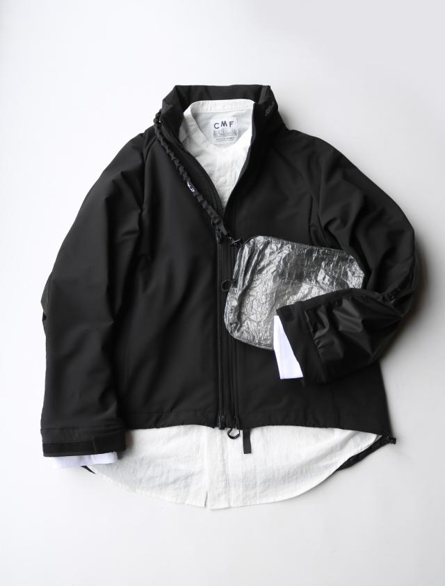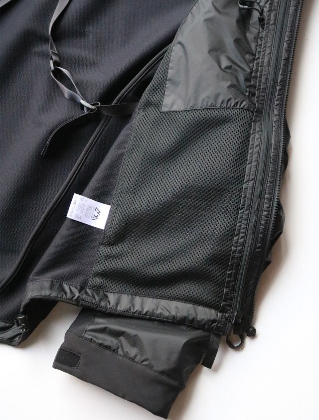 近年ジャージ素材が流行っている中、ジャージをソフトシェルに置き換えて製作。世界に誇るYKKの新技術「CLICK-TRACK? MAGNETICK」を採用し、磁石の反動のみで簡単に脱着ができる仕様となっている。