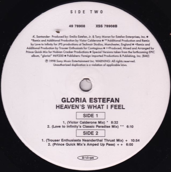 【中古】米12” Gloria Estefan Heavens What I Feel 4978908 Epic /00250
