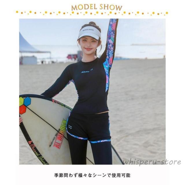 水着 レディース 長袖 ラッシュガード レギンス付きショートパンツ 2点セット フェイクレイヤード パッド入り 体型カバー 旅行 プール リゾート ミ
