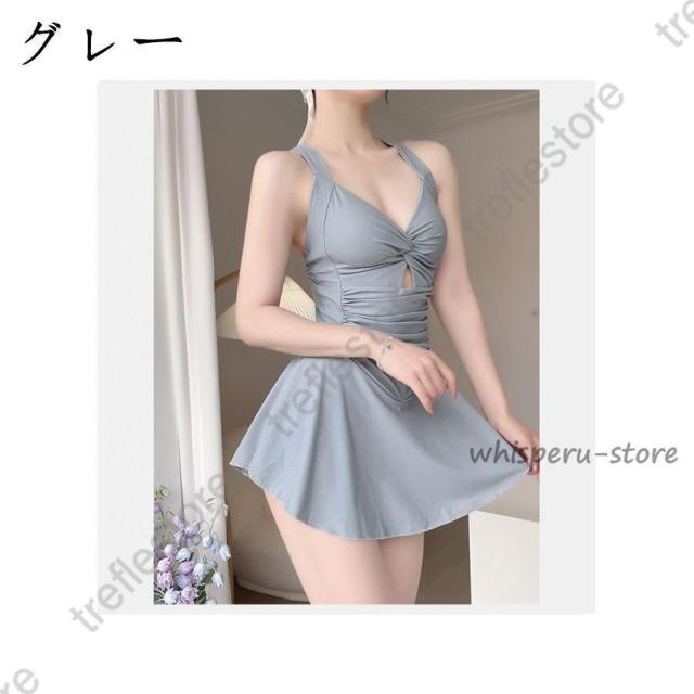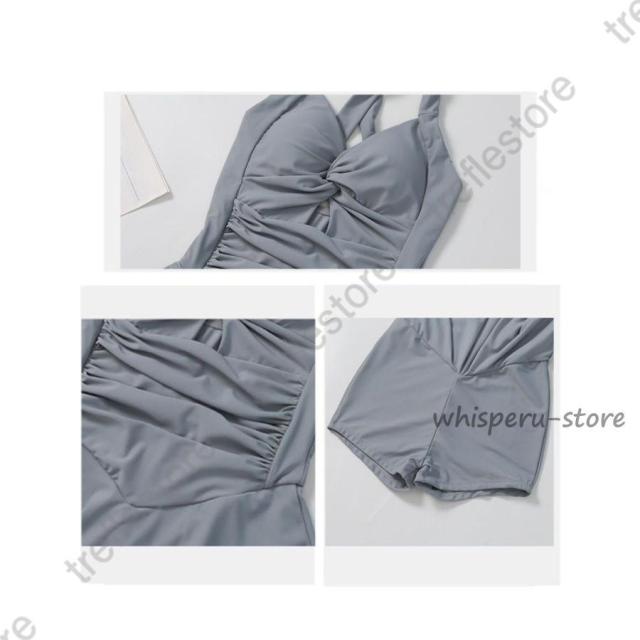 ワンピース水着 レディース 露出控えめ水着 ビーチウェア ショートパンツ一体型 ママ水着 韓国 大人可愛い スイムウェア バッククロス オールインワン 温泉