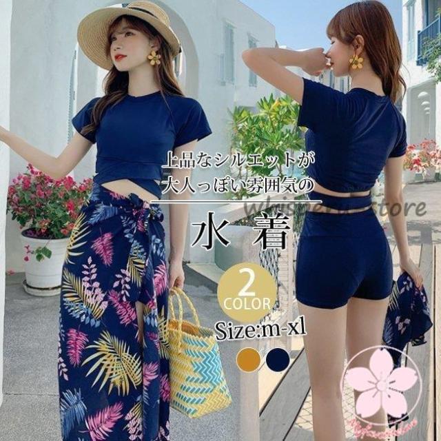 水着 レディース ビキニ 3点セット 体型カバー 上品 水着セット 無地 セパレート 着痩せ おしゃれ 大人 パッド付き タンキニ 温泉 大きいサイズ