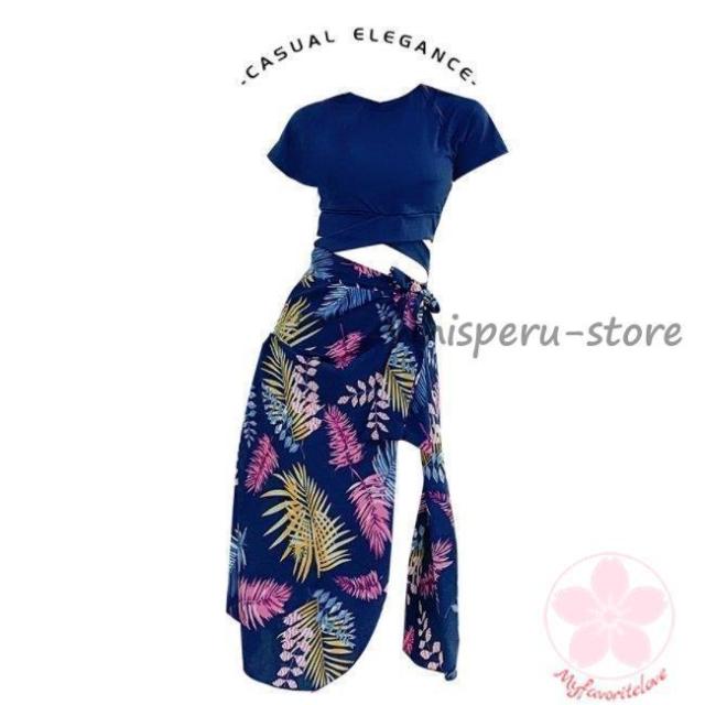 気になる部分をふわりとカバーしてくれる、カバーアップ水着3点セットです。