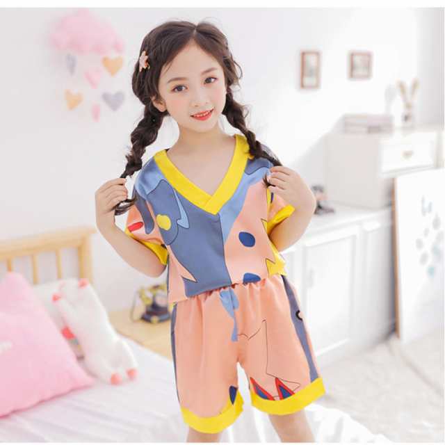 [QSSNY] キッズ パジャマ 男の子 女の子 サテン 上下セット 半袖 ルームウェア 子供服 部屋着 寝間着 ベビー服 ルームウエア 子供パジャマ 夏 110-160cm ベビー ショートパンツ セットアップ 赤ちゃん ナイトウェア JITIFA