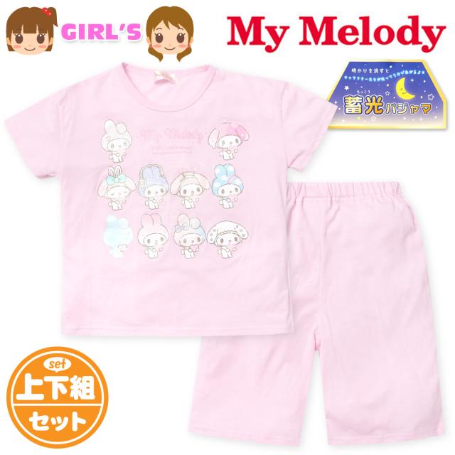 【送料無料】女児 キッズ ジュニア 天竺 半袖 光るパジャマ Sanrio サンリオ マイメロディ ハーフパンツ 上下組 蓄光 ラメ 子供服 女の子 130cm 140cm 150cm td-0915【メール便対応】