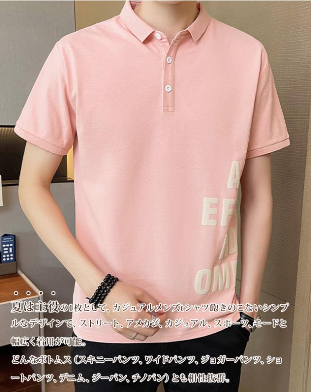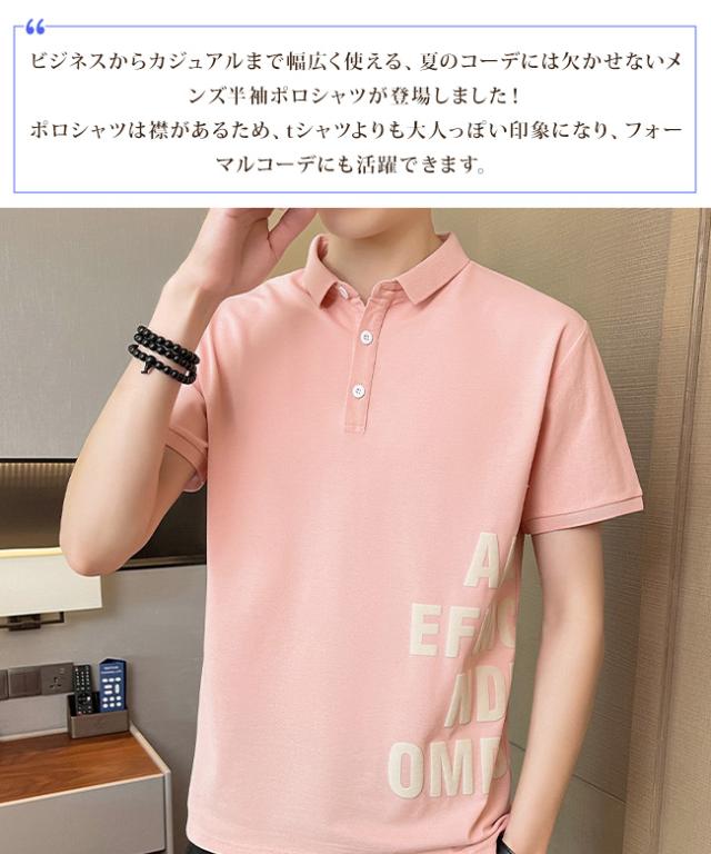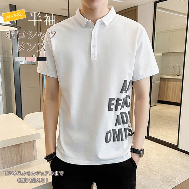 ポロシャツ メンズ 半袖Tシャツ トップス ボタン 夏 英字柄 ゴルフウエア おしゃれ 大きいサイズ カジュアル 通気性 薄手 ビジネス カットソー