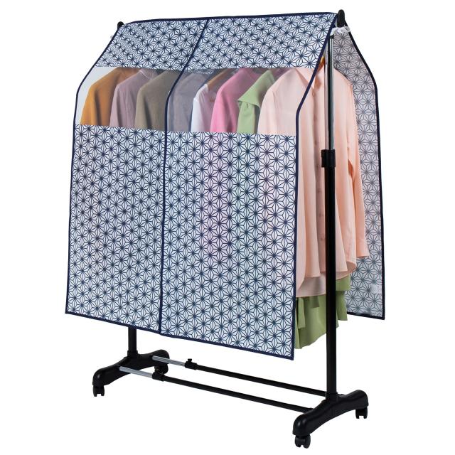 【商品仕様】:サイズ/約幅90×高さ110cm、内容/1枚、柄/麻の葉柄、適応サイズ/幅90cmのハンガーラック、材質/ポリプロピレン・ポリエチレン