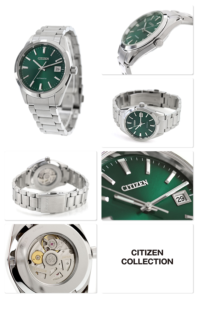 正規品 7年保証キャンペーン 送料無料 シチズン コレクション メンズ 腕時計 NB1051-56W CITIZEN COLLECTION アナログ 松葉色 ◆高精度キャリバーを搭載した、シンプルでベーシックなデザインのメカニカルウオッチ。小ぶりなサイズが人気のシリーズに、日本の伝統色をテーマにした文字板カラーが登場しました。文字板は、松の葉から連想される深く落ち着いた松葉色を採用。四季を通して、いつも変わらない松の葉の緑は、長寿と不変の象徴ともいわれる縁起の良い色合いです。シーンを問わずお使いいただけ、誕生日や記念日のプレゼントにもおすすめです。 発売日:2025年5月発売