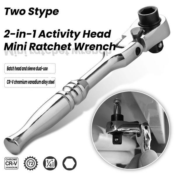 自動車修理用ミニラチェットレンチ,ダブルエンドソケットレンチ,可動式ヘッドトルク,ハンドツール,2 in 1, 1/4