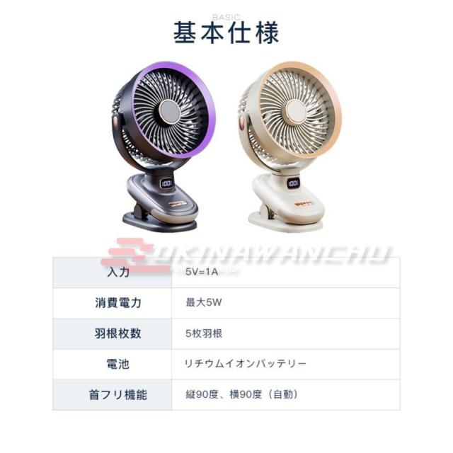コンパクトな充電式クリップ扇風機