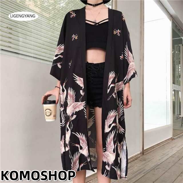和柄 ガウン ロング丈 トップス 羽織 ジャケット 長袖 薄手 鶴 ツル 柄 カッコイイ 個性的 和風 オリエンタル 鳥 総柄 派手 目立つ ユニーク 春 夏 秋 アウター ロングコート 海 プール リゾート コーデ ブラック 袖あり ゆったり ゆる カジュアル バスローブ 日焼け防止 上着 カーディガン モダン レトロ ノスタルジック クール 存在感 トモノトーン モノクロ 韓国 ファッション 海外 モデル ロングジャケット イベント パーティー 衣装 仮装 面白い 他にない