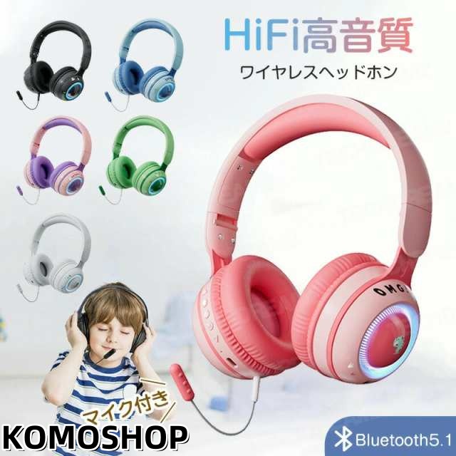 子供 ヘッドホン 子供向け Bluetooth5.1 ヘッドホン 有線 無線 両用 子供用 ワイヤレスヘッドフォン ヘッドセット 通話マイク搭載 音量制限 聴覚保護 キッズヘッドフォン LEDライト きらきら 折り畳み