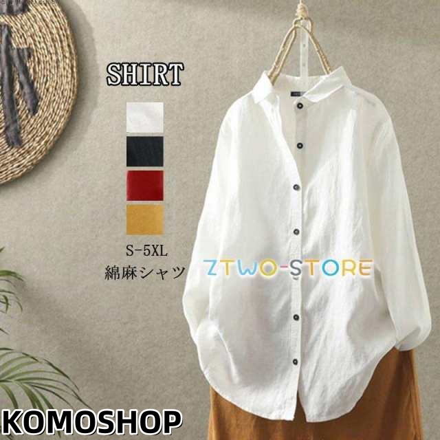 ブラウス レディース トップス シャツ 白 ホワイトシャツ シャツブラウス OL 無地 長袖 大きいサイズ コットン リネン 白シャツ 襟付き オフィス 秋 春 夏