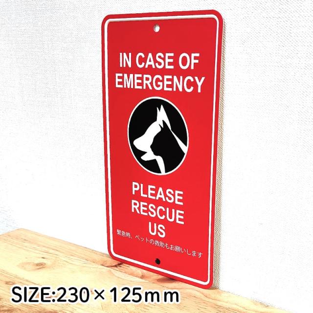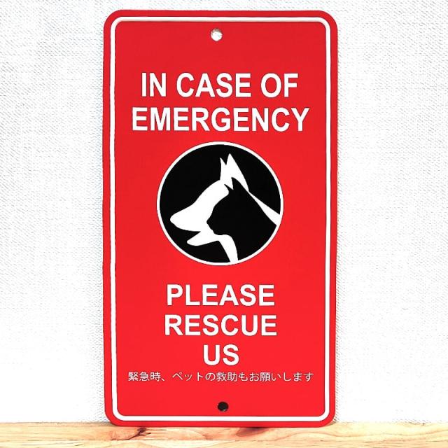 アルミニウム プレート 緊急時ペットの救助もお願いします メッセージサイン 看板 目立つ レッド 動物 アメリカン 雑貨 おしゃれ インテリア 壁飾り 赤 ディスプレイ 玄関 ガレージ