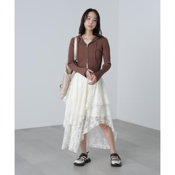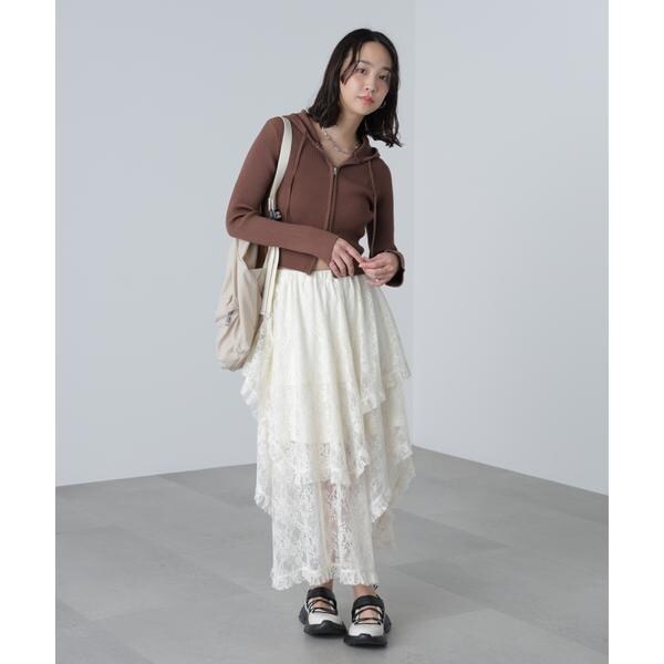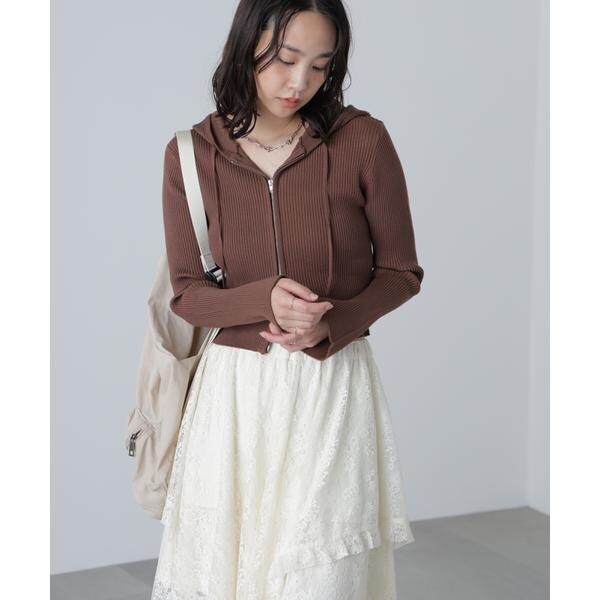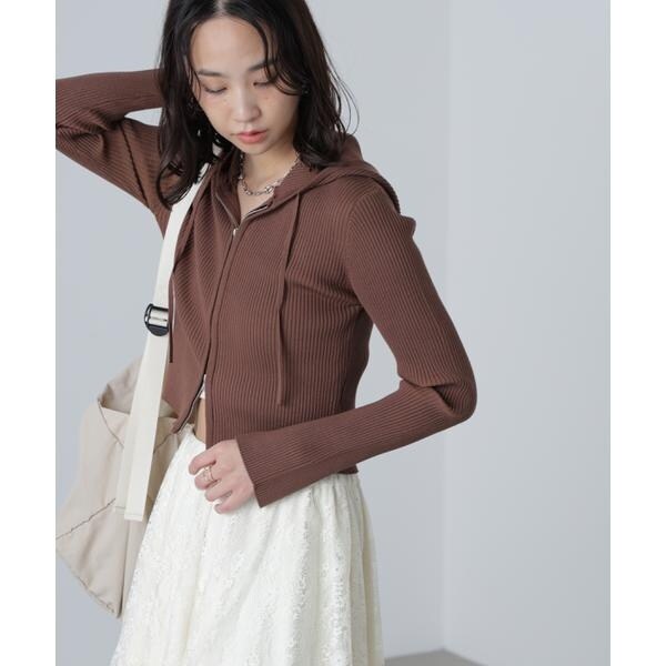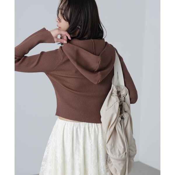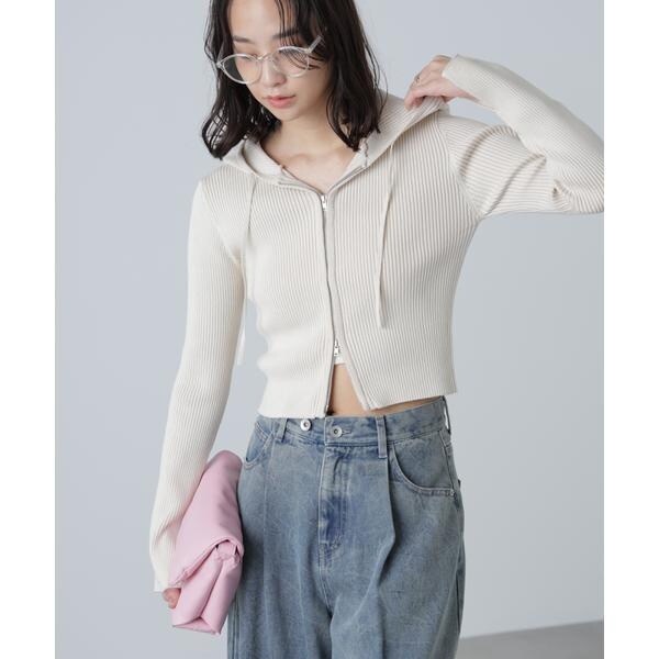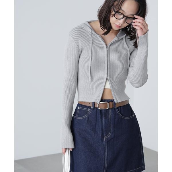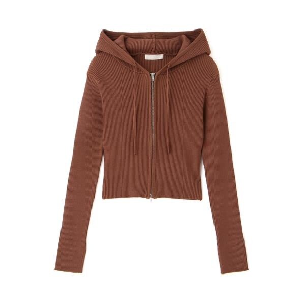 体に沿うフィットしたシルエットのニットパーカー。羽織りとしてもパーカーとしても着られるデザインです。ニット特有の伸びを最小にするため、プレーティングを2本入れてしっかり伸縮性をプラス。ニットの編地は風合いが出るよう、表糸とプレーティング糸で微配色にしています。フロントZIPは逆開仕様なので、合わせるボトムによって、ウエストを見せるようファスナー開閉するとスタイルアップします。袖は長めの袖丈にし、袖口にはスリット入り。プリーツミニスカートや、ルーズなシルエットのパンツと合わせてY2Kストリートスタイルに。ナロースカートと合わせてレディなスタイルもおススメです。※モデルの着用画像の場合、光の当たり具合により、実際の色味と異なって見えることがございます。色味は、商品単体の画像をご参照ください。