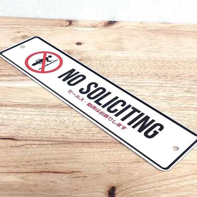 看板 メッセージサイン セールスお断り 勧誘お断り メッセージプレート 玄関 おしゃれ お店 アルミニウム NO SOLICITING アメリカン 壁飾り 雑貨 軽い 玄関 カフェ バー 店舗