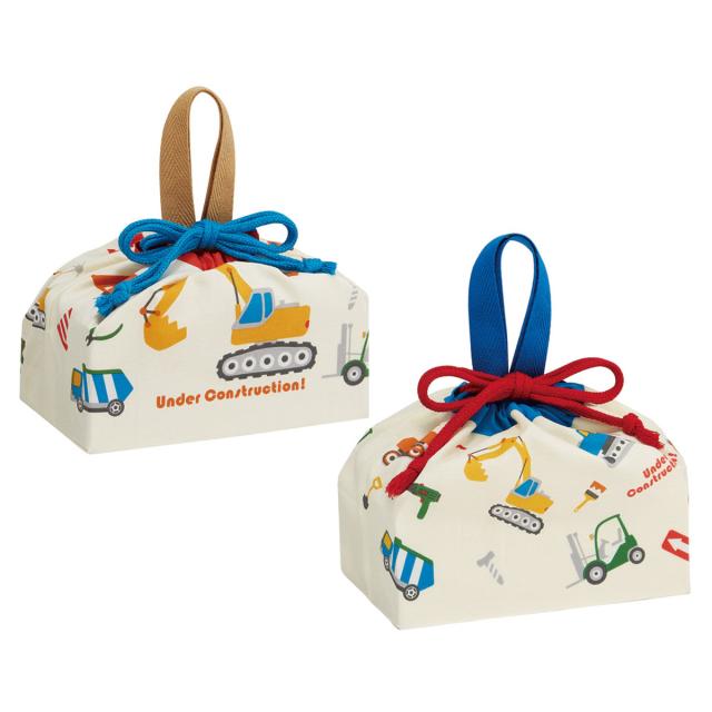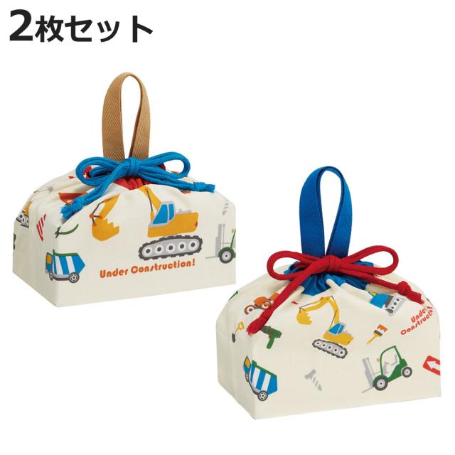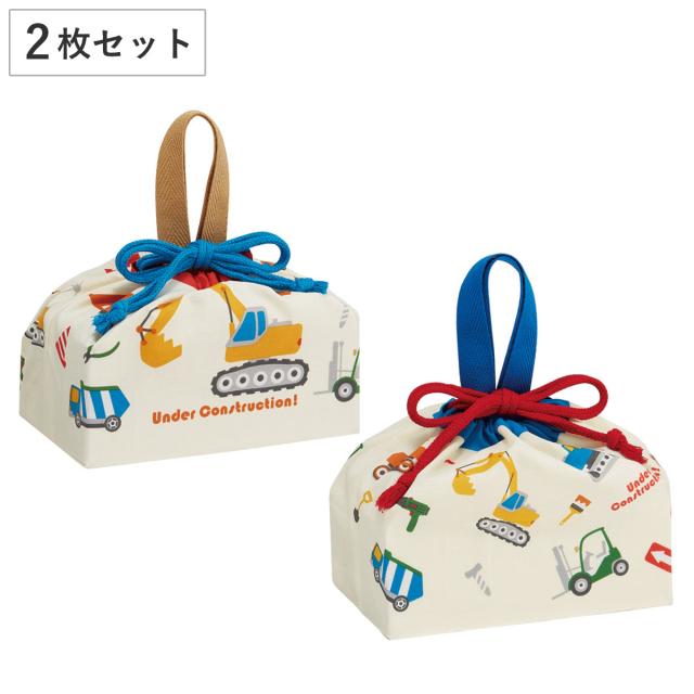 お弁当袋 ランチ巾着 2枚セット はたらくクルマ ( 弁当袋 給食袋 巾着袋 ランチバッグ 子供 お弁当箱 日本製 弁当箱 弁当 給食 袋 弁当巾着 マチ 小物入れ 幼稚園 保育園 キッズ )