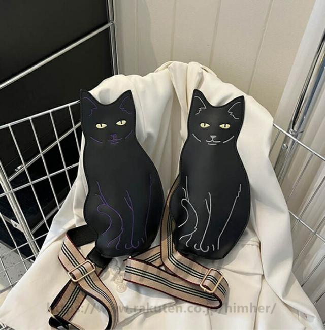 クールな黒猫ショルダーバッグは猫好きな方に普段使いのショルダーバッグとして素敵な一品