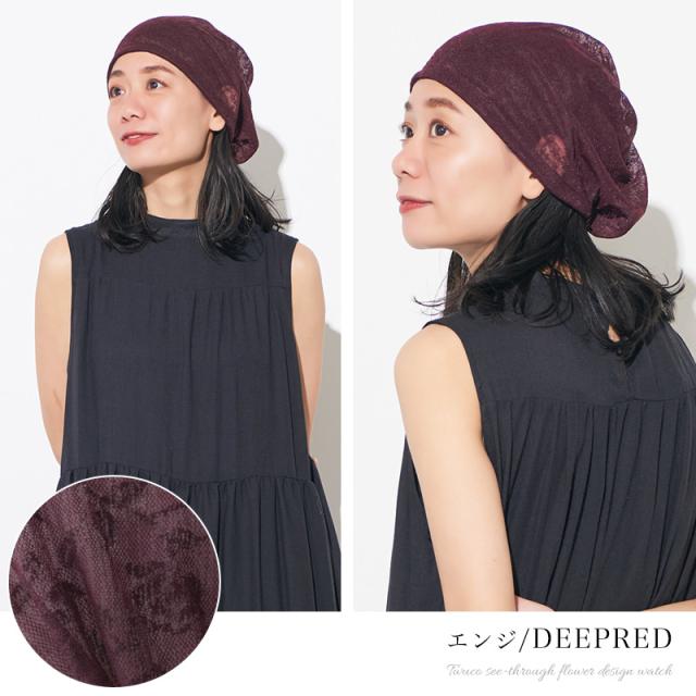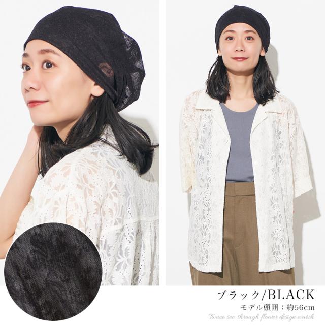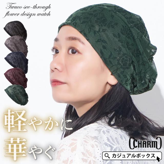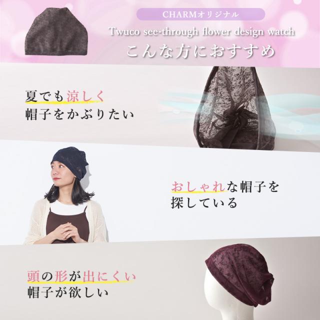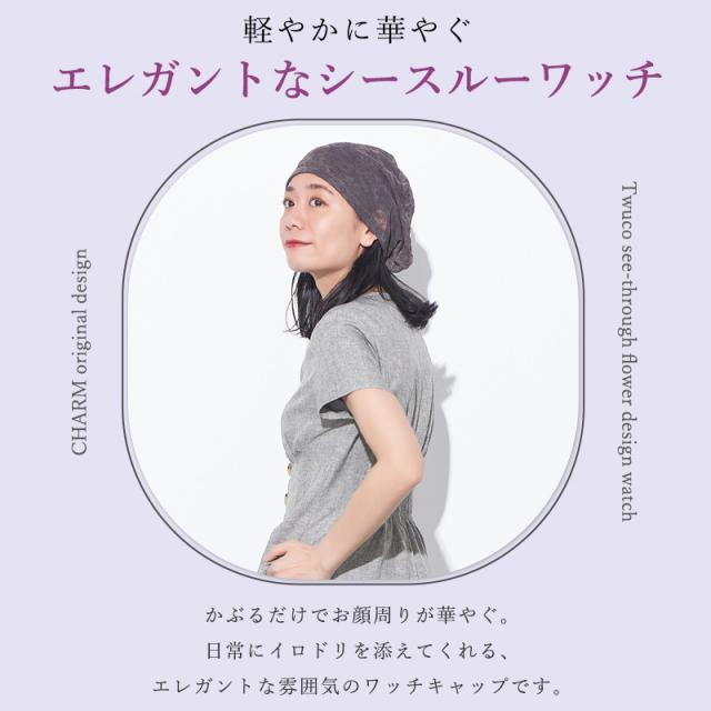レディース オールシーズン 春 夏 春夏 春用 夏用 ポリエステル100% 帽子 ニット帽 ニットキャップ ワッチキャップ サマーニット帽 サマーニットキャップ 医療用帽子 おしゃれ 可愛い | CHARM Twucoシースルー フラワー デザインワッチ be-twu