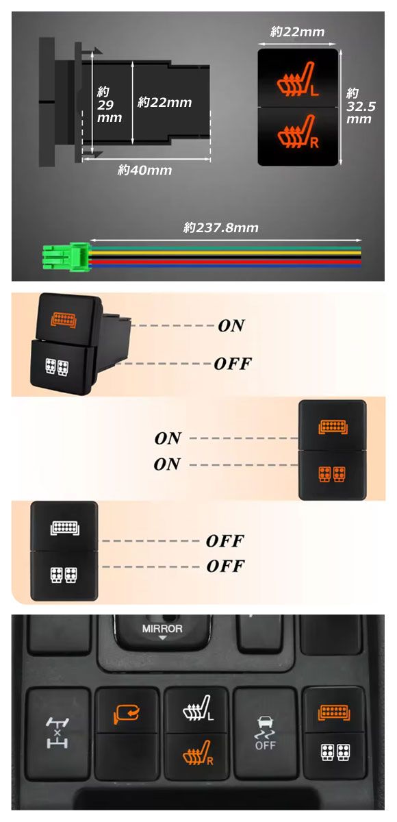 増設用 LEDスイッチ オレンジ/ホワイト点灯 タイプ12 12V トヨタ/スバル/スズキ汎用 AP-EC924-T12