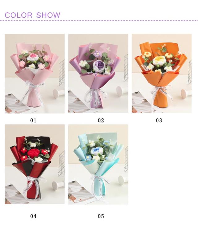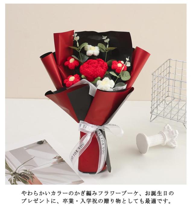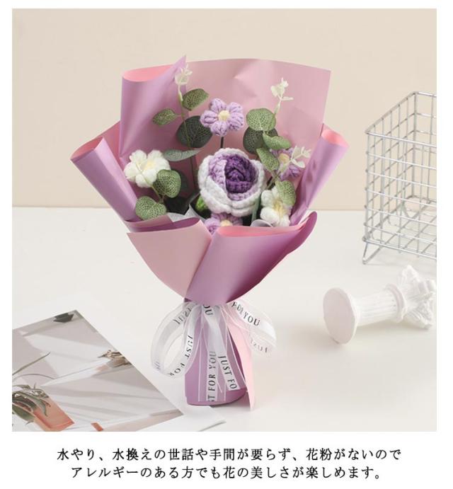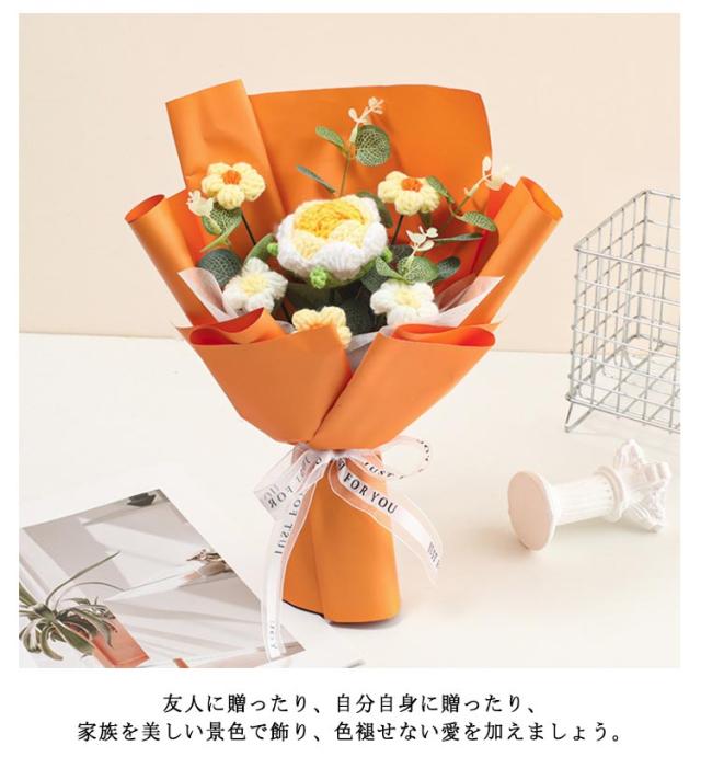 | 【かぎ編みフラワーブーケ】 美しく色あせない手作りのかぎ針編みのフラワーブーケは、一年中明るい色を示します。 水やり、水換えの世話や手間が要らず、花粉がないのでアレルギーのある方でも花の美しさが楽しめます。 友人に贈ったり、自分自身に贈ったり、家族を美しい景色で飾り、色褪せない愛を加えましょう。 やわらかいカラーのかぎ編みフラワーブーケ、お誕生日のプレゼントに、卒業・入学祝の贈り物としても最適です。 造花なので枯れる心配がなく、長く楽しんでいただけます。 持ち運びに便利なクリアケース入り、花粉がないので衛生的、お見舞いフラワーとしてもおすすめです。 | |