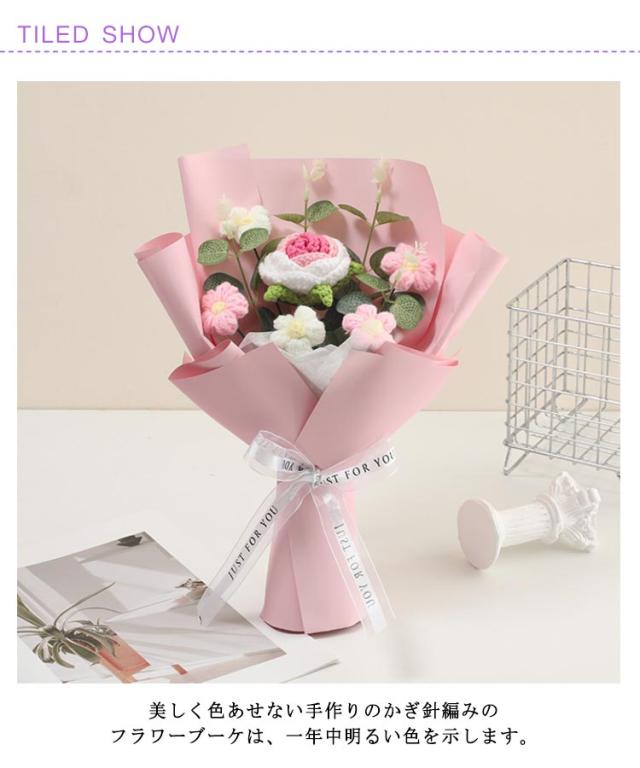 ニットフラワー 母の日 ニットブーケ LEDライト ギフト袋付き 手作り花 かぎ針編み ブーケ 毛糸 カラフル 可愛い 手つくり 子供 花束 造花 飾り ギフト プレゼント 記念日 敬老の日 成人式 卒業式 バレンタイン お祝い 推し活 結婚記念日 父の日 誕生日