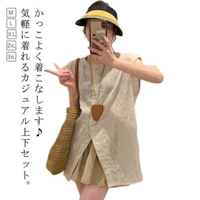セットアップ 2点セット レディース 半袖ブラウス ショートパンツ レース UV対策 紫外線対策 UVカット パンツ オーバーサイズ ファッション カジュアル ゆったり 可愛い シンプル 夏物 ルームウェア リラックス お出かけ 送料無料