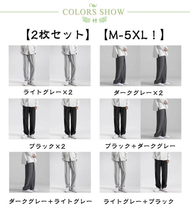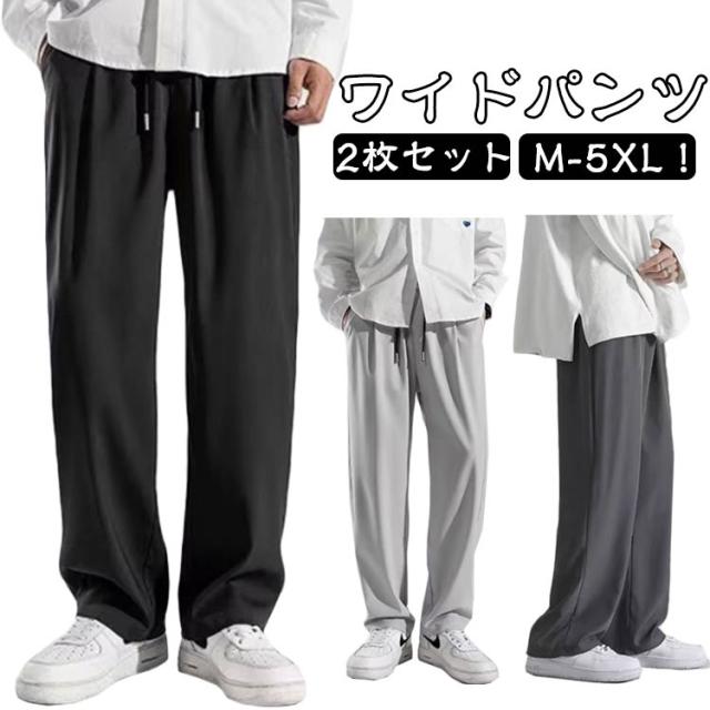 ワイドパンツ メンズ 2枚セット 接触冷感 パンツ 夏 涼しい 吸水速乾 チノパン 清涼 涼感 ズボン ゴルフウェア アイスシルクパンツ テーパード ジョガーパンツ ロングパンツ スポーツパンツ ゆったり 大きいサイズ 無地 軽量 薄手 通気 送料無料