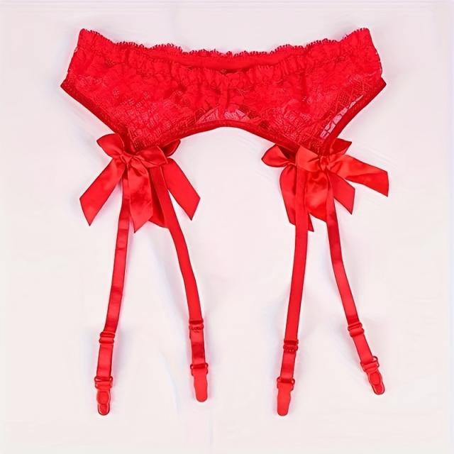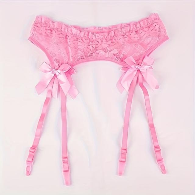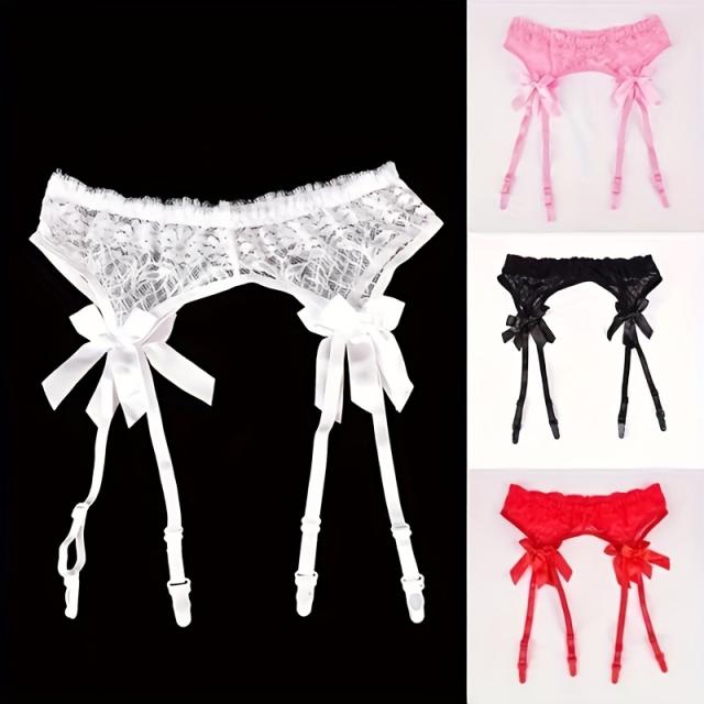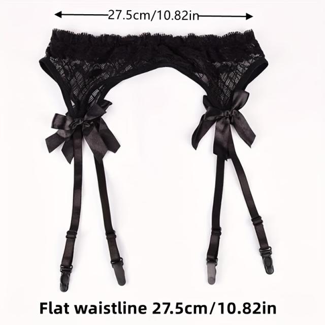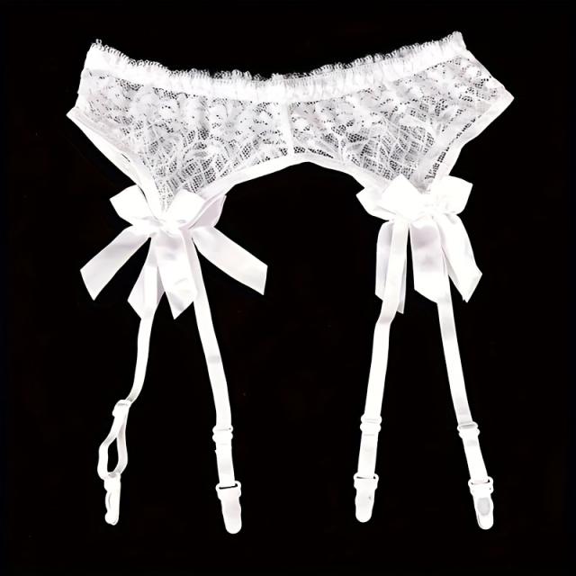 エレガントなレースのガーターベルトクリップ付きセクシーなメッシュサスペンダーサイハイソックスストッキングかわいい弓無地ガーターベルト