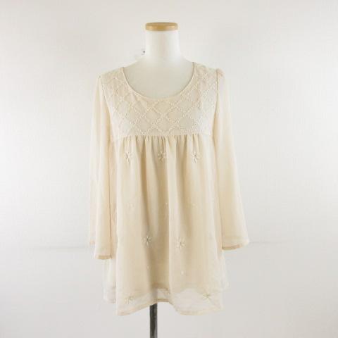 【中古】マジェスティックレゴン MAJESTIC LEGON カットソー ブラウス チュール 七分袖 刺繍 ベージュ F レディース