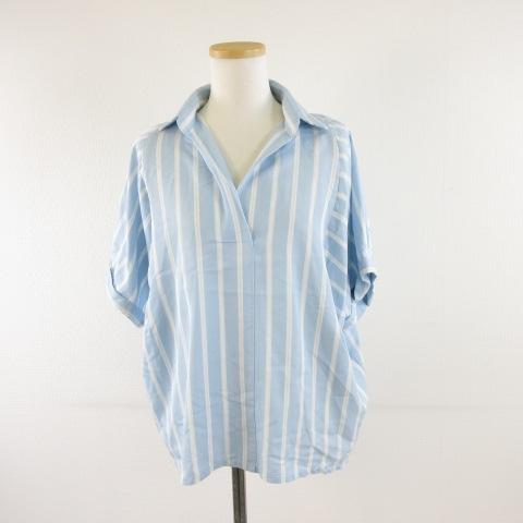 【中古】ローリーズファーム LOWRYS FARM スキッパーシャツ カットソー 半袖 ストライプ 水色 白 M *A515 レディース