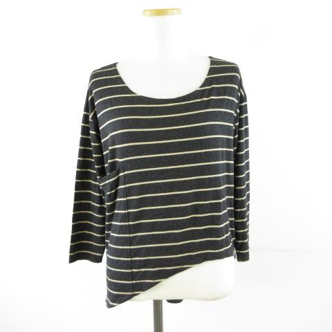 【中古】Fighting Eel カットソー Tシャツ 七分袖 ボーダー 変形 黒 XS *T116 レディース