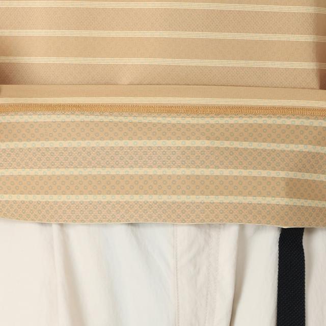 BALFOUR RIVER S/S BORDER TEE 夏らしい天竺とメッシュ素材をボーダーラインで切り替えた、レトロスポーティな半袖Tシャツ。夏に嬉しい冷却機能「オムニフリーズゼロ」を搭載しており、肌面に配置した青いサークルプリントが、汗に反応して持続的な冷却効果を発揮。