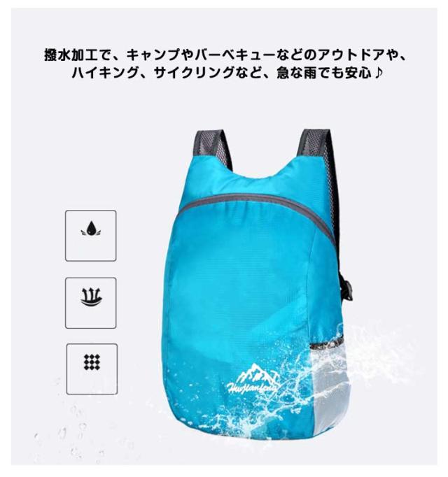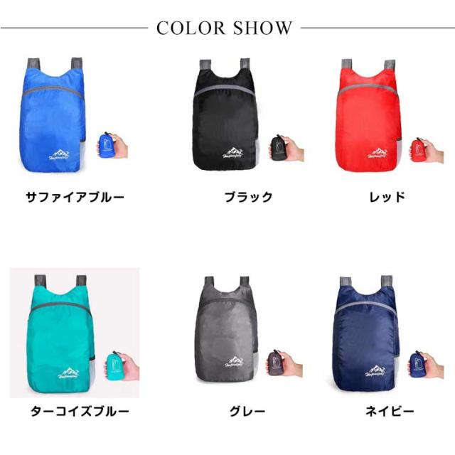 | 必要なときにパッと取り出して使える折りたたみ携帯リュックサック。 手のひらサイズに折りたたんで携帯や収納に超便利♪ちょっとしたお出かけや、ウォーキング、散歩の時など、両手が使えて便利です。 20Lの大容量、耐久性にも優れているので、日帰り旅行や、遠足、運動会、屋外作業、野外イベントなどでも大活躍する携帯リュック。 撥水加工で、キャンプやバーベキューなどのアウトドアや、ハイキング、サイクリングなど、急な雨でも安心♪ 自転車のヘルメットもすっぽり収納できるので、持ち運びが便利。駐輪時にヘルメットをかついで持ち歩けるので盗難防止にも活躍しそうです。 | |