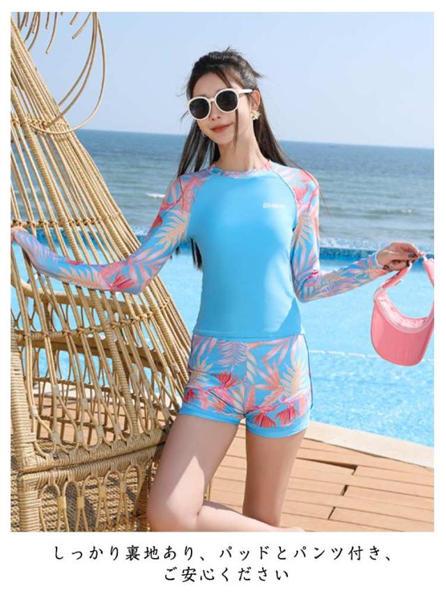 長袖 セパレート 女の子 長袖 フィットネス水着 ガールズ 2点セット ジュニア スクール水着 キッズ キッズ水着 体型カバー スイムウェア 短パン 裏地付き レイヤード風 紫外線対策