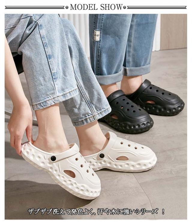 | 超ソフトな履き心地でブームになったEVAシューズ。 ザブザブ洗えて発色よく、汗や水に強いシリーズ ! 足に心地良いクッション素材! ベルトを前に倒せばサボにもなる。 | |