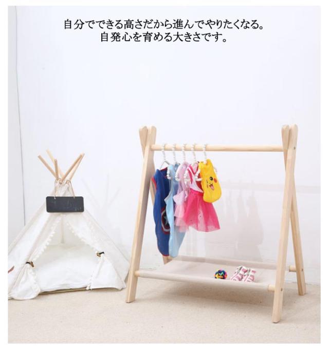 キッズハンガーラック 幅52cm/高さ75cm 衣類収納 ラック コートハンガー 木製 キッズ ハンガー 子供 折りたたみ 子供服 洋服掛け ハンガーラック ハンガーポール ポールハンガー 頑丈 コンパクト 省スペース 収納 子供部屋 リビング
