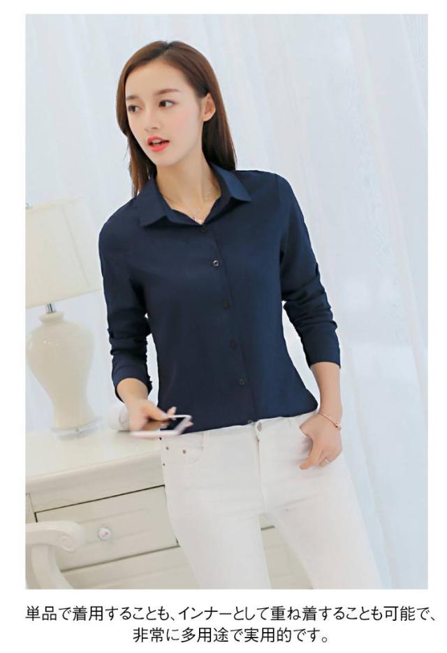 | 全11色!シンプルおしゃれな無地シャツ。 高品質なシフォン素材を使用しており、手触りが柔らかく、通気性も良好で、春夏の季節に最適です。 スリムなデザインが優雅なシルエットを引き立て、長袖のデザインはさまざまなシーンに適しております。 単品で着用することも、インナーとして重ね着することも可能で、非常に多用途で実用的です。 | |