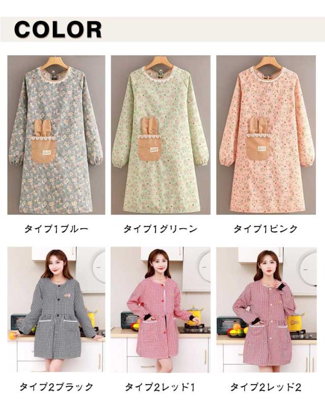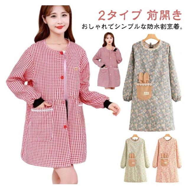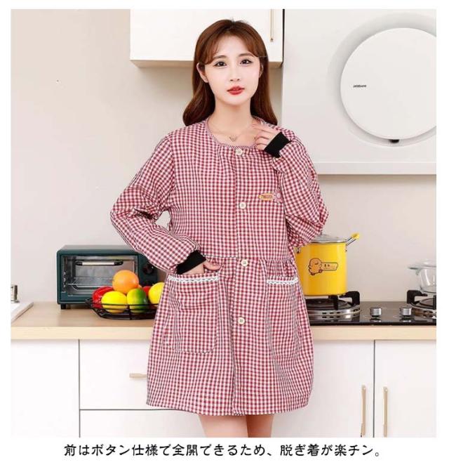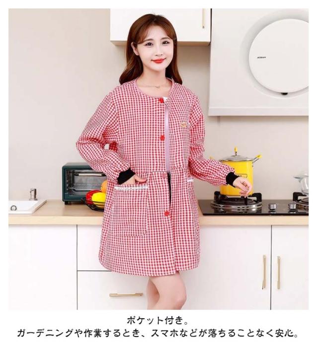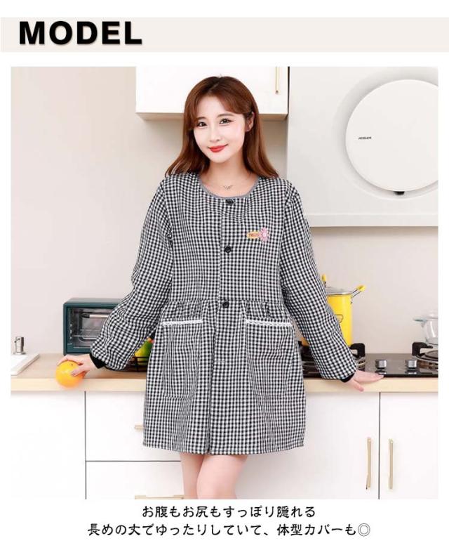 大人用 ポケット付き ロング かっぽう着 おしゃれ レディース 割烹着 袖付き かわいい 割烹着 チェック柄 前開きタイプ オシャレ 2タイプ 長袖 エプロン スモック ルームウェア 保育士 介護士 給食 学校 家事 かっぽうぎ 2タイプ おしゃれ チュニック