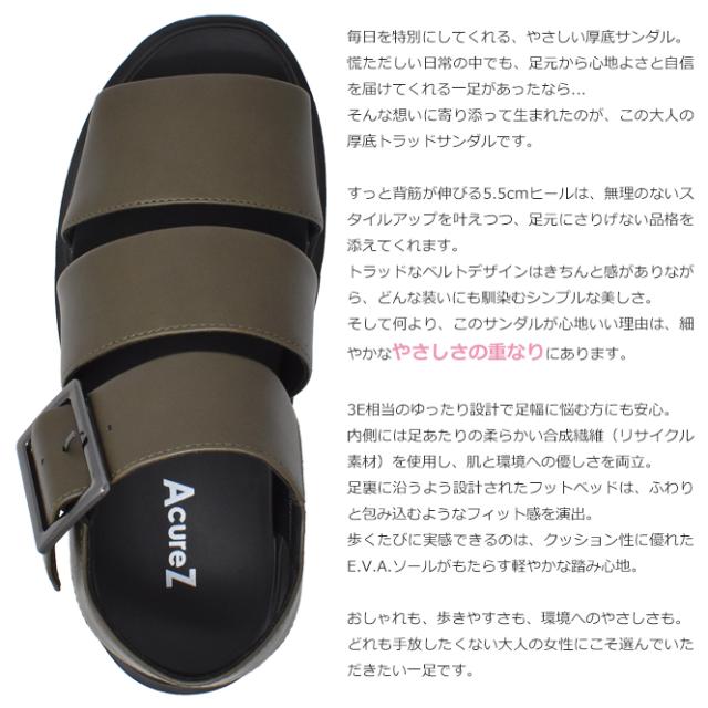 asics AcureZ ベルトサンダル レディース ストラップサンダル オープントゥ 厚底 3E相当 幅広 楽 柔らかい 痛くない 疲れない 歩きやすい アシックス商事 アキュアーズ 履きやすい 小さいサイズ 大きいサイズ 強剛母趾 外反母趾