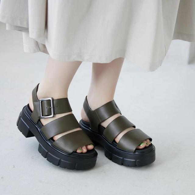 5.5cmの厚底が自然にスタイルアップを叶えながら、大人らしい凛とした存在感を引き出してくれるトラッドサンダルです。