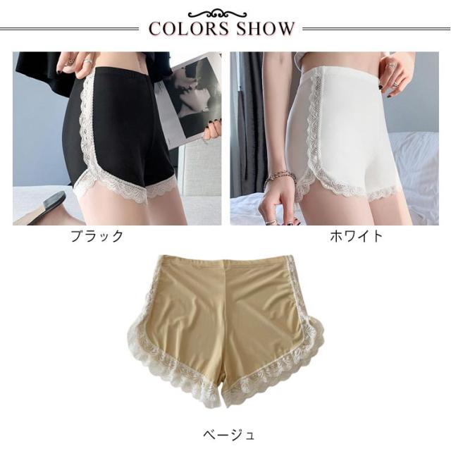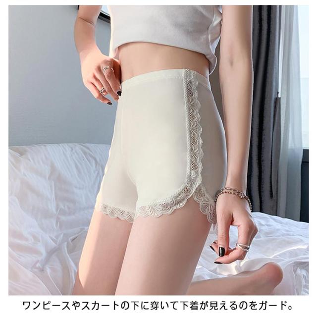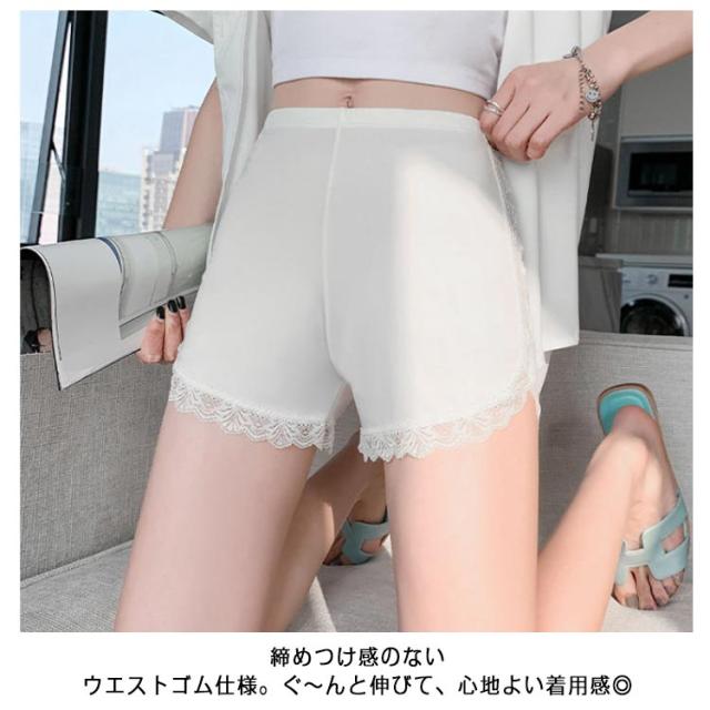 スパッツショート丈 送料無料 透け防止 レース付き ペチコート ルームウェア コットン 婦人用 ペチパンツ 下着 アンダーウェア 肌着 送料無料 無地 シンプル レディース おしゃれ