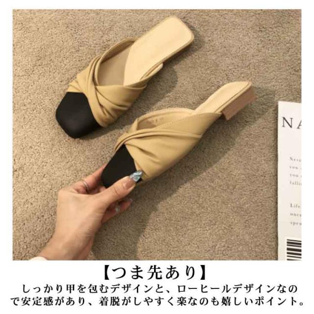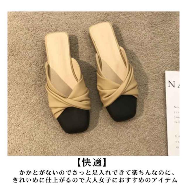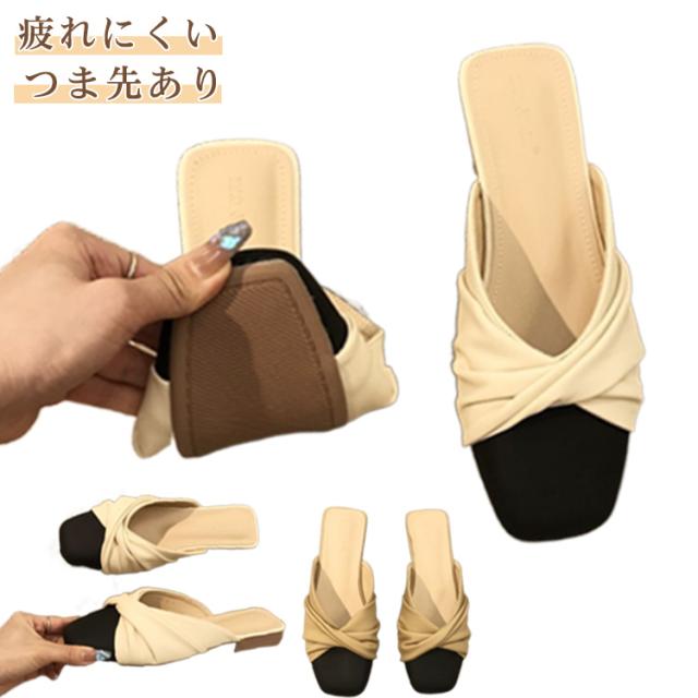 レディース サンダル スリッパ スクエアトゥ 疲れない 可愛い おしゃれ ローファー風 ミュールサンダル 走れる ローヒール 歩きやすい スリッポン ローヒール かかとなし スリッパ レディース フラットシューズ ペタンコ 美脚 カジュアル 春夏 日常履き 通学 通勤