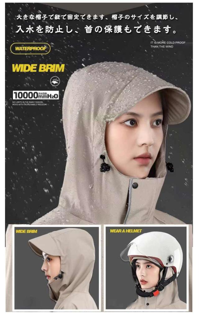 | 高い機能性とデザイン性を両立させた男女兼用のレインウェアです。 大きな帽子で紐で固定できます、帽子のサイズを調節し、入水を防止し、首の保護もできます。 前立てはハイネック+ボタンの二重設計で、水や風の侵入を防げ、大雨でも心配することなく。 マジックテープで調節可能なフードが顔周りにフィットし、雨水の侵入を防ぎます。 ゴム入りの袖口で袖への雨風の侵入を防ぎ、自転車運転時や雨の日の作業時に便利。 表面に汚れが付きにくい防水加工を施しているので、大雨でも心配もいらない。 通勤や通学、釣り、登山、キャンプなど、さまざまなアウトドアシーンにぴったりのアイテムです。 | |