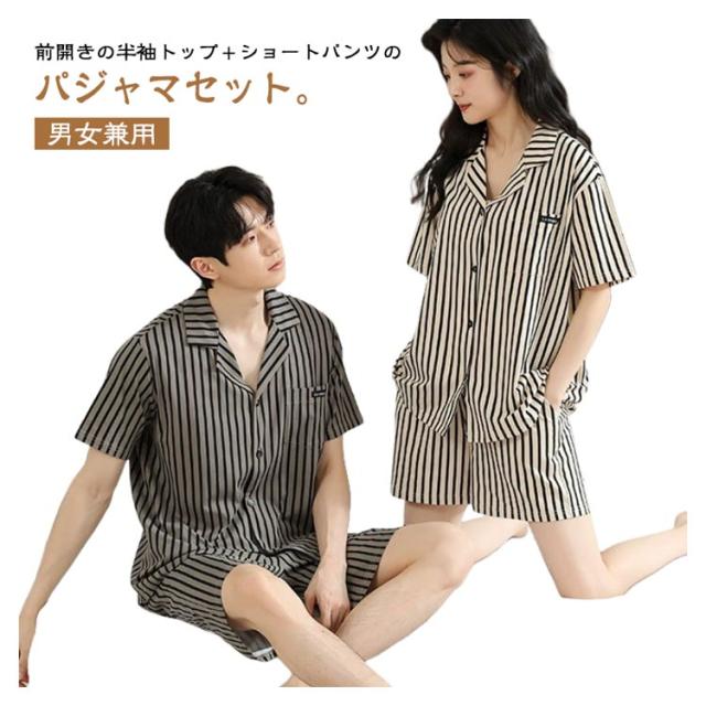 半袖 綿100% メンズ 上下セット 綿100% ショートパンツ 前開き ストライプ柄 おしゃれ レディース パジャマ 春 夏 薄手 セットアップ ルームウェア ナイトウェア 寝巻き 部屋着 入院 ハーフパンツ 半袖シャツ オープンカラー ペア 夫婦 お揃い 大きいサイズ